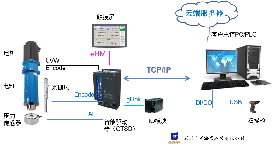 1、行程內位置精度達到土0.01mm以內(額定負載內任意速度條件下)。2、壓力達到5%FS以內,配合定制電缸可以幫助用戶取消模具導套、限位等,簡化工裝夾治具,特別適合小批量多品種的產品生產。